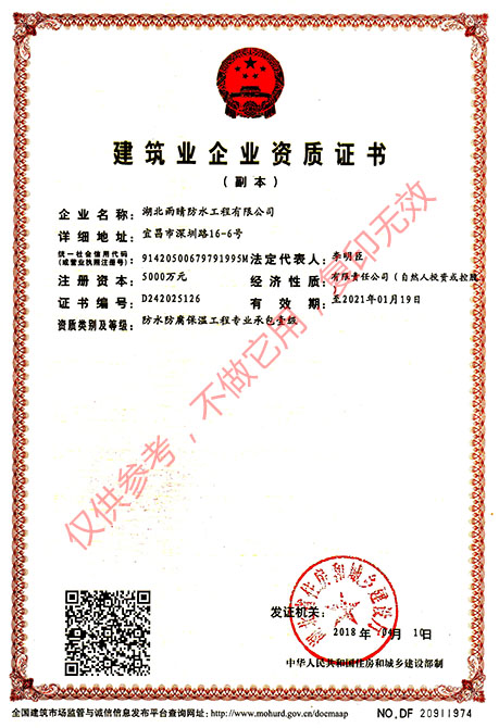 -國(guó)家防水防腐保溫工程專(zhuān)業(yè)承包壹級(jí)資質(zhì)
